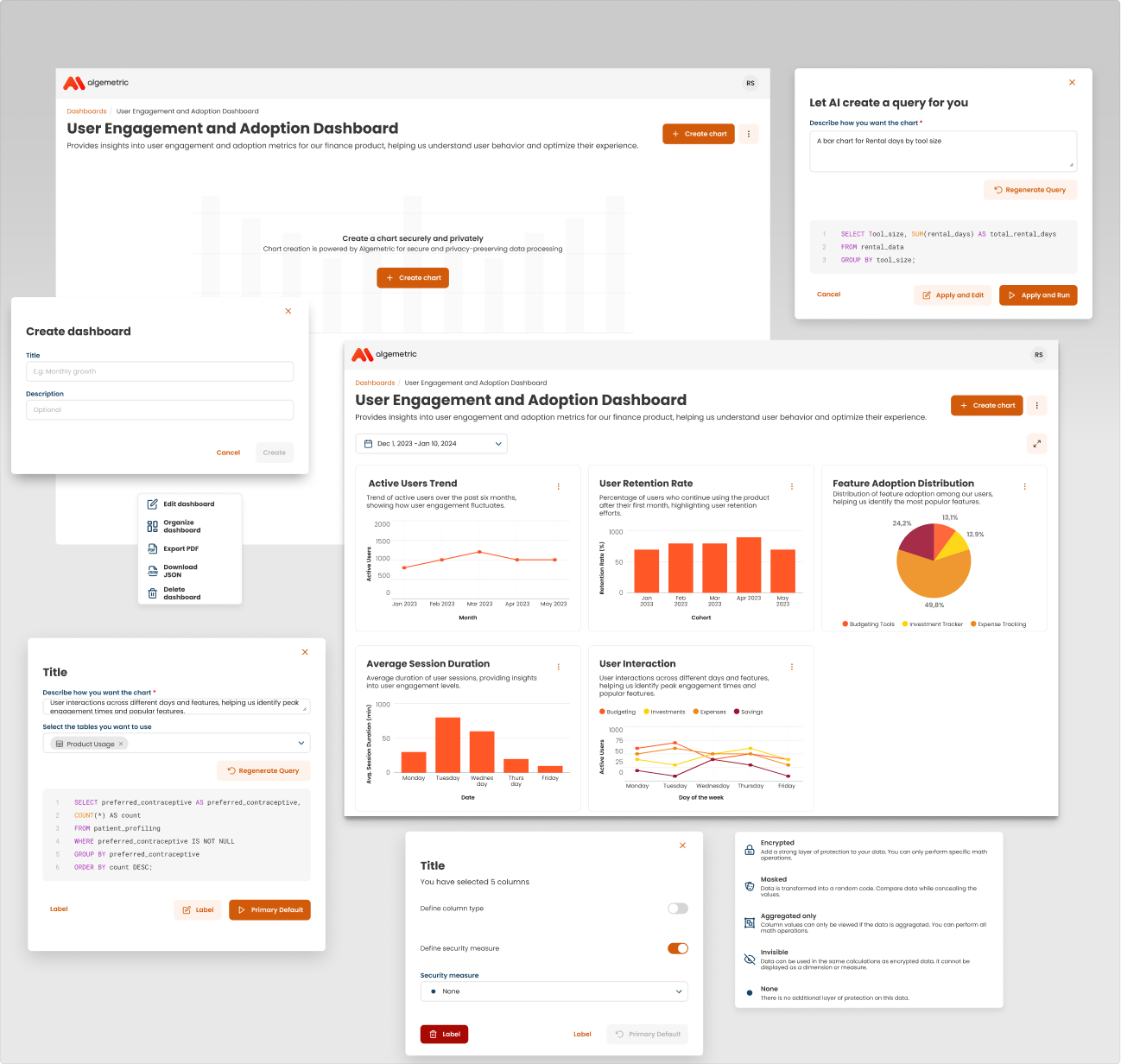 Prisma is Algemetric’s privacy-first Business Intelligence (BI) platform that enables teams to analyze encrypted data without exposing sensitive information. Built for highly regulated sectors, Prisma provides no-code access to analytics through natural language interfaces and secure data sync.