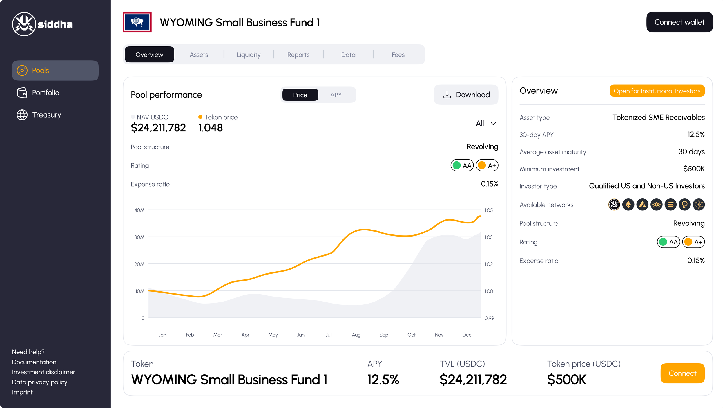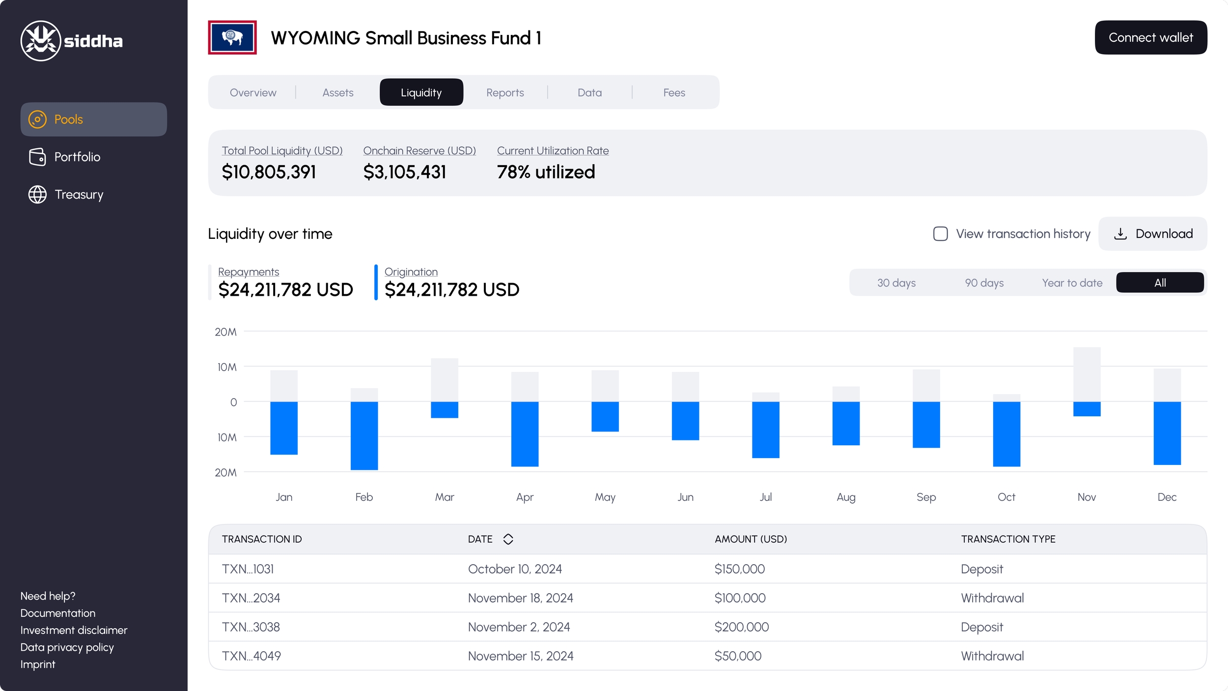 Siddha is a fintech platform enabling real-world asset tokenization to unlock liquidity for SME receivables, oil-based contracts, and real estate-backed loans. Designed for institutional investors and treasury teams, Siddha offers seamless workflows, real-time data, and cross-chain treasury analytics.